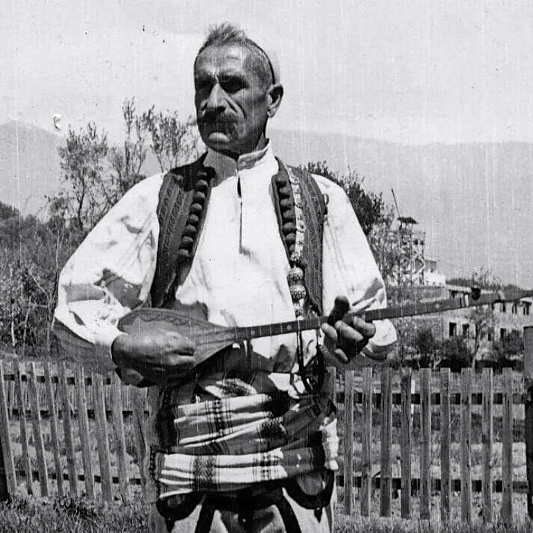 Kosovo Albanians are the largest ethnic group in the country, part of a transnational Albanian-speaking region straddling Albania, Montenegro, and North Macedonia.[2] Throughout the northern part of this area, the figure of the bard remains a key pillar of national identity. Prominent recent poets include Dervish Shaqa (1912-1985) and Bajrush Doda (1936-2011), and traditional ballads are still being produced, even among the younger generations. The ability to master the crystal-sounding chifteli—or the three-string sharki (a deeper, bulkier lute)—and to perform traditional epics, whether original songs or part of an inherited repertoire, still bestows an aura of respect on those known here as “rhapsodes.” [3]