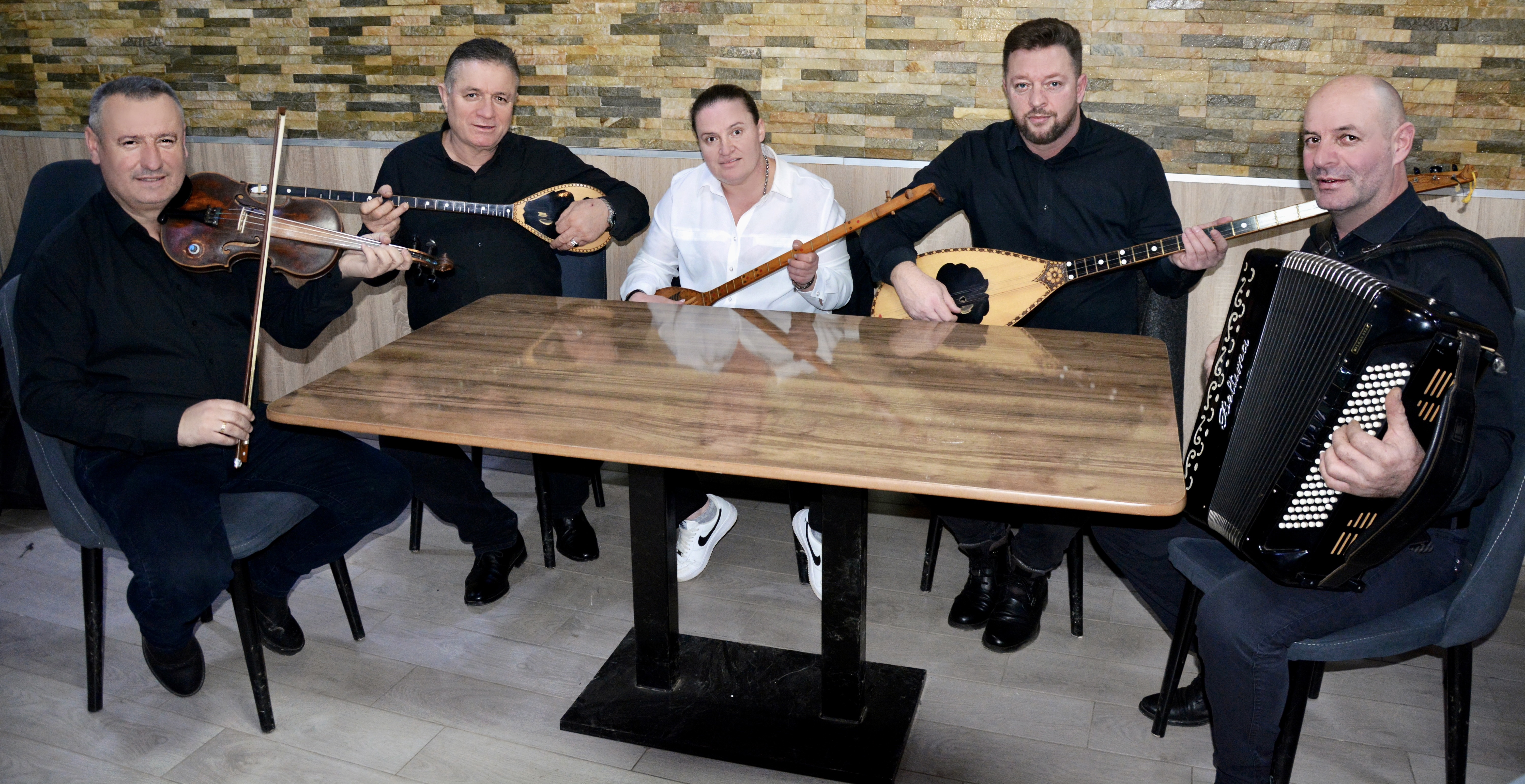 Can hearing a voice change your life? In this case, I can answer yes. I had met Naxhije two years earlier in the most unlikely of circumstances, lying on a sofa in Paris, France, on a dark Covid night. Traveling was impossible, so I went on a social networking trip. And no doubt knowing my taste for the great traditional musics of Southeast Europe, the YouTube algorithm sent me straight to her. Well, “straight” is an understatement. Let’s just say that my eyes fell on a singing situation that immediately drew me in like a magnet. In the video, a number of musicians, all men, were sitting cross-legged around a low table, playing small, long-necked lutes, a violin, and an accordion, surrounded by all-male listeners squeezed onto couches. From this rich instrumental ensemble sprang a soprano voice, as convincing and powerful as a cry. I took a closer look: the singer was a young woman, alone in the midst of all these men, plucking her two-stringed çifteli lute, [1] and she seemed to be the center of attention.
